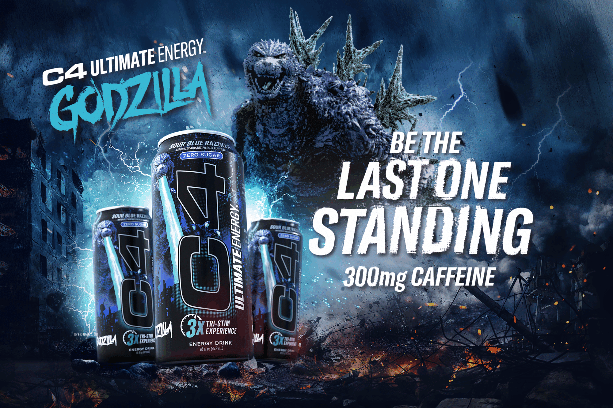 “Since the first film, Godzilla has reigned as the undisputed King of the Monsters,” said Robert Zajac, Chief Marketing Officer of Nutrabolt. “What a perfect partner for C4 Ultimate Energy – a legend among energy drinks! While C4 Ultimate Energy doesn’t have heat rays, it does have 300mg of caffeine and a brand-new Sour Blue Razzilla flavor that packs a delicious punch.”